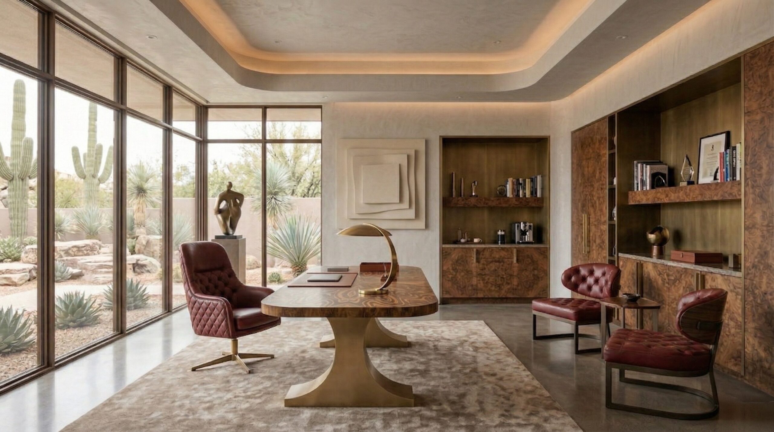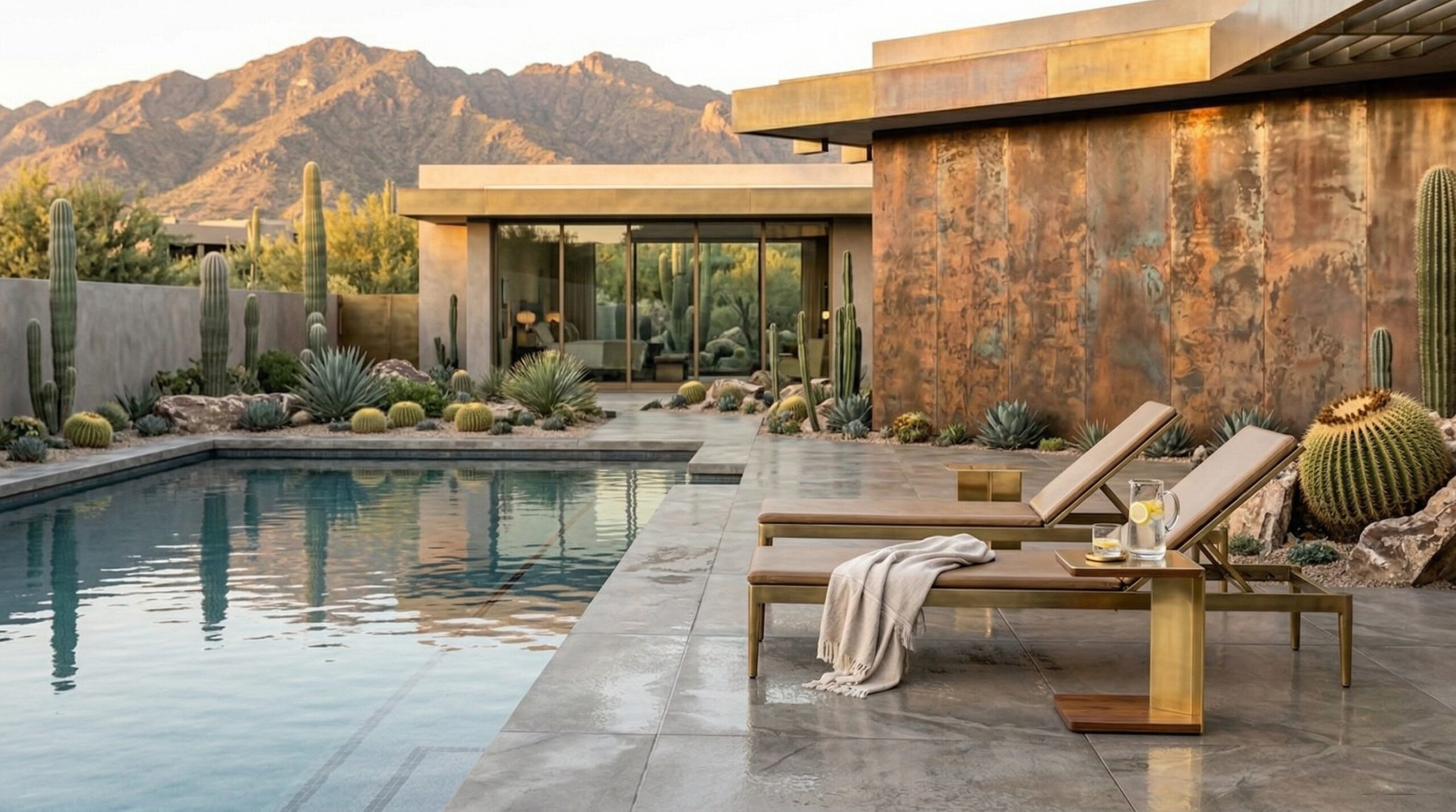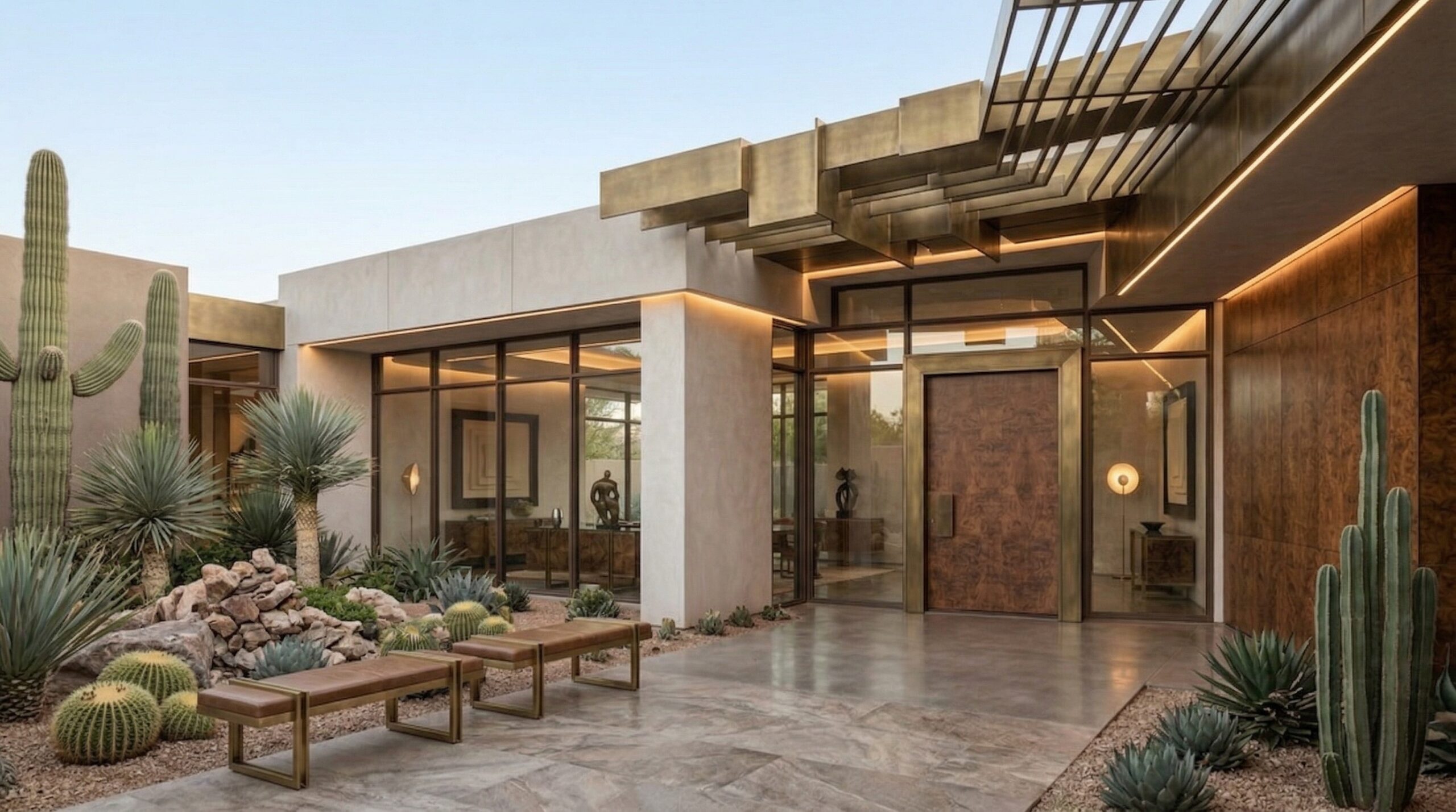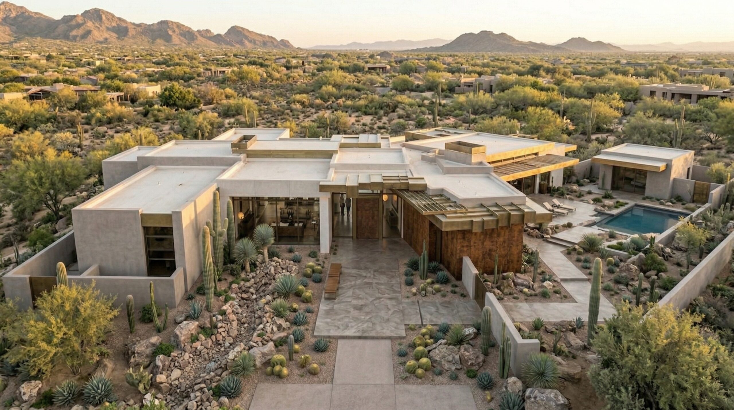 Mutfak ve yemek alanları, hem sosyal etkileşimi destekleyen hem de manzara ile ilişki kuran merkezi bir çekirdek olarak tasarlanmıştır. İç avlu ve kaktüs peyzajı, ışık ve gölge oyunlarıyla mekâna gün boyunca değişen bir atmosfer kazandırır. Tasarım, çağdaş çöl mimarisini rafine bir yaşam kurgusu ile birleştirir.