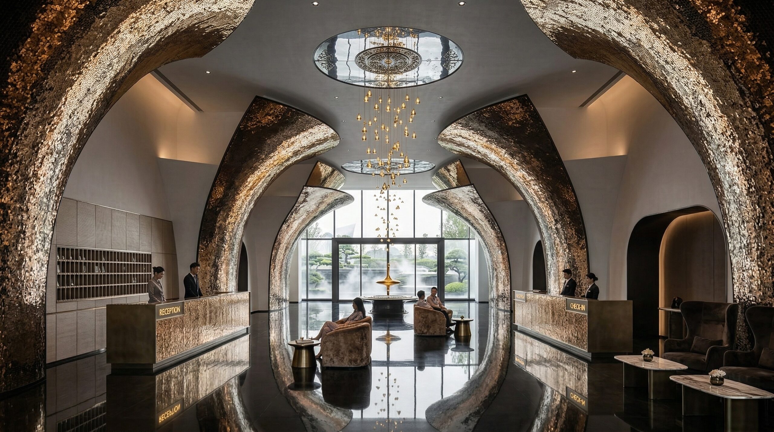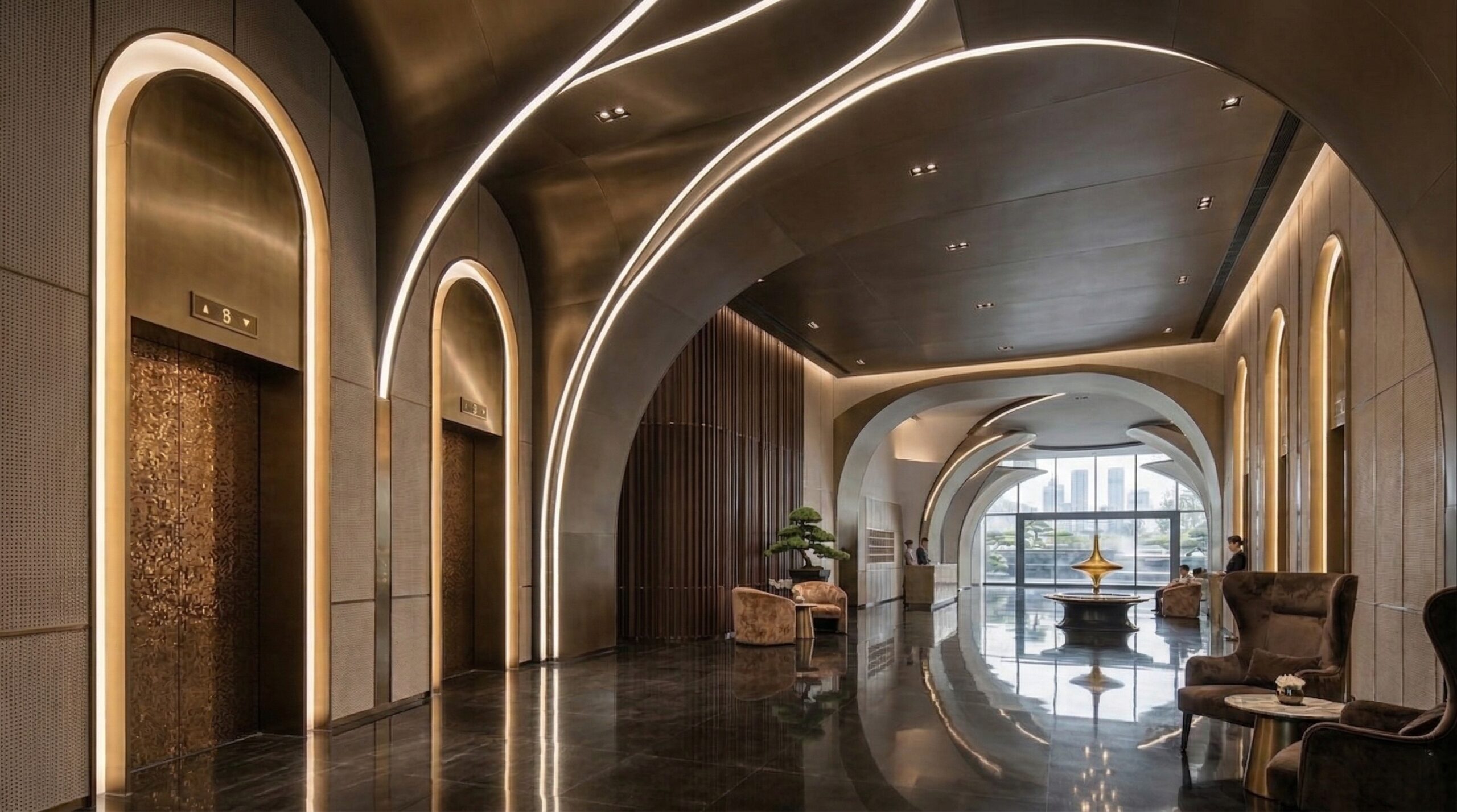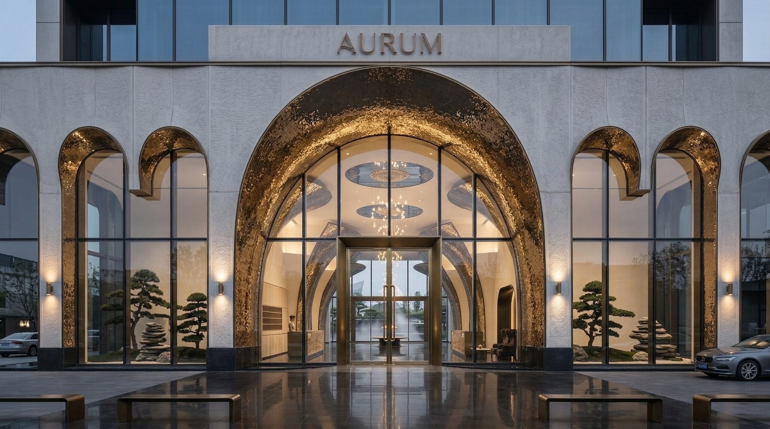 Klasik kemer formunu çağdaş şehir oteli kurgusu ile yeniden yorumlayan bu tasarım, güçlü giriş aksı ve ışıkla vurgulanan yüzeyleri ile dikkat çeker. Anıtsal giriş açıklığı ve yarı geçirgen cephe dili, iç mekân ile kent arasında akışkan bir ilişki kurar.