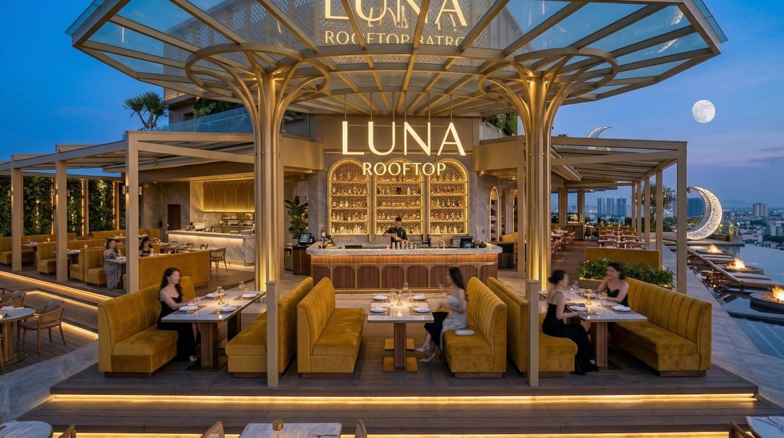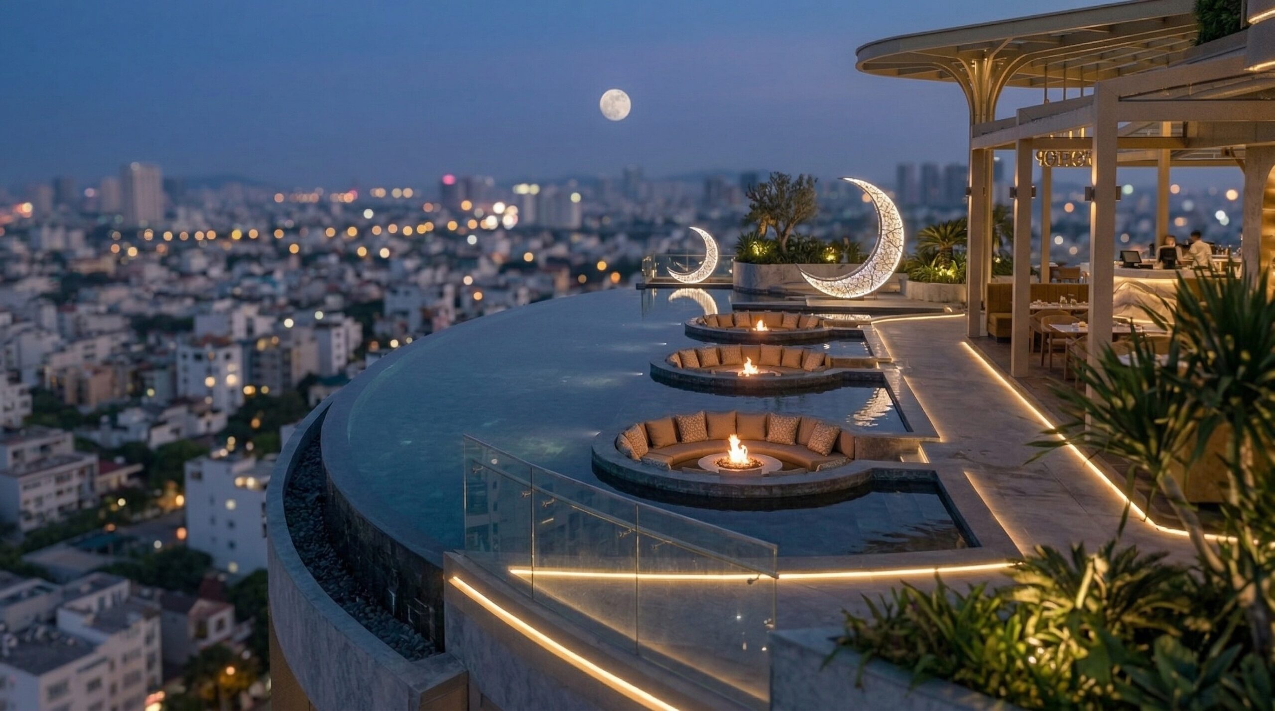 Çatı katında konumlanan teras ve sosyal alanlar, şehir manzarasını deneyimin merkezine alırken; restoran, lounge ve dinlenme alanları ile yapı günün farklı zamanlarında yaşayan bir sosyal platforma dönüşür.