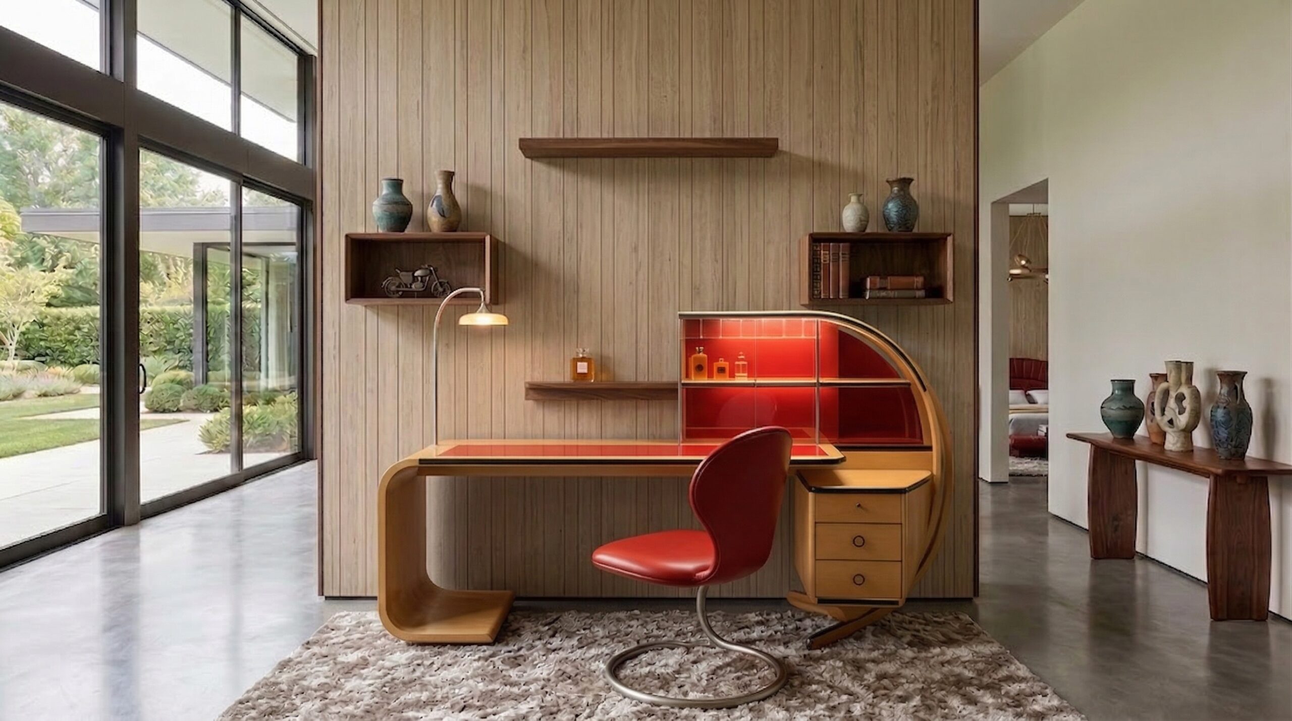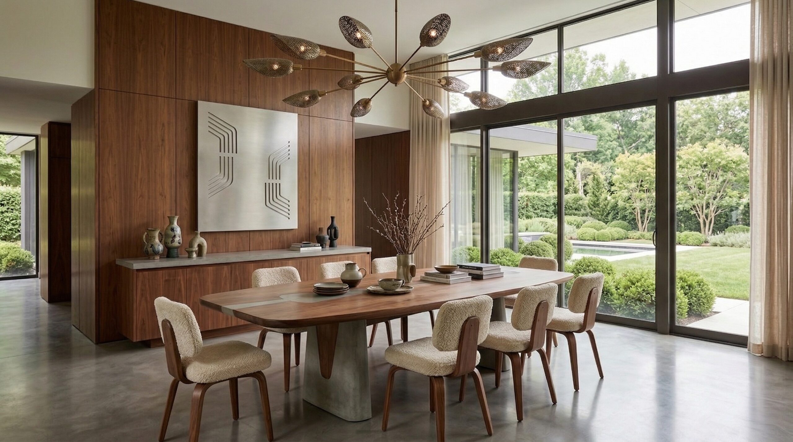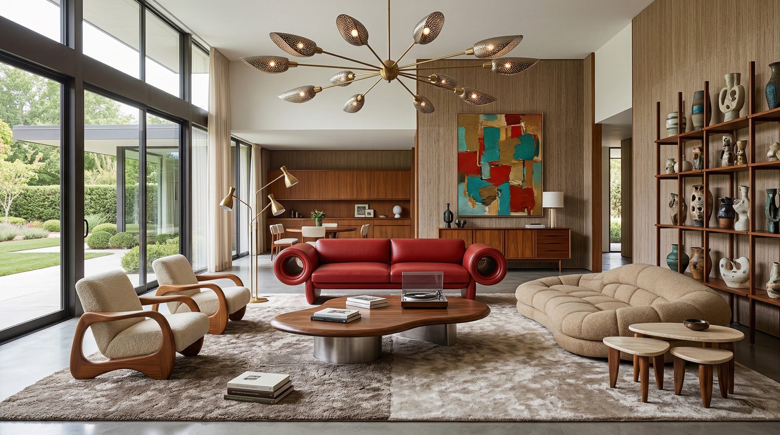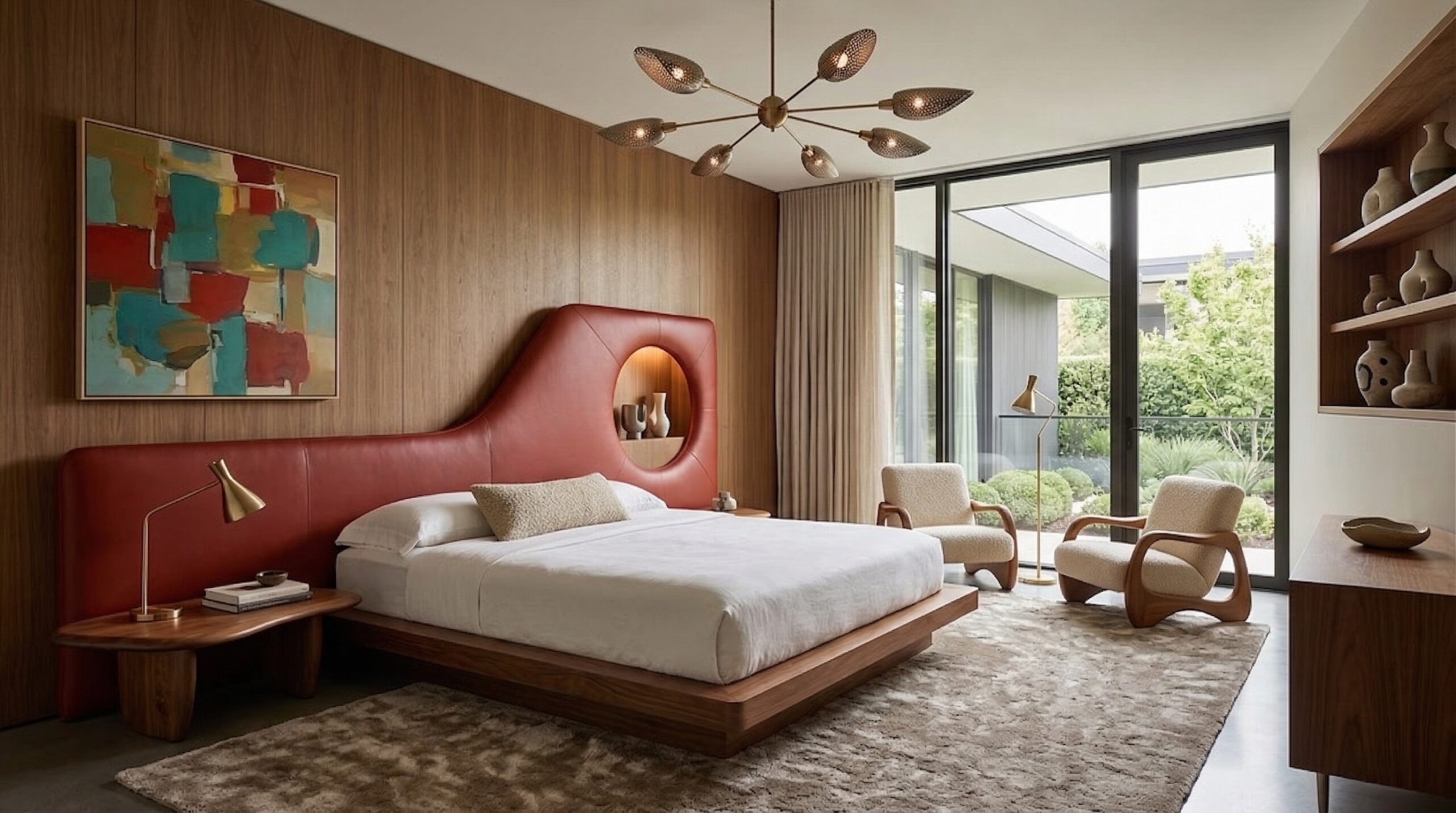 İç mekânda ahşap yüzeyler, doğal taş dokular ve sıcak renk paleti dengeli bir atmosfer oluştururken; kırmızı ve toprak tonlarındaki mobilyalar mekâna karakter kazandırır. Çift hacimli salon ve yüksek tavanlı alanlar, ferah ve davetkâr bir mekânsal deneyim sunar.