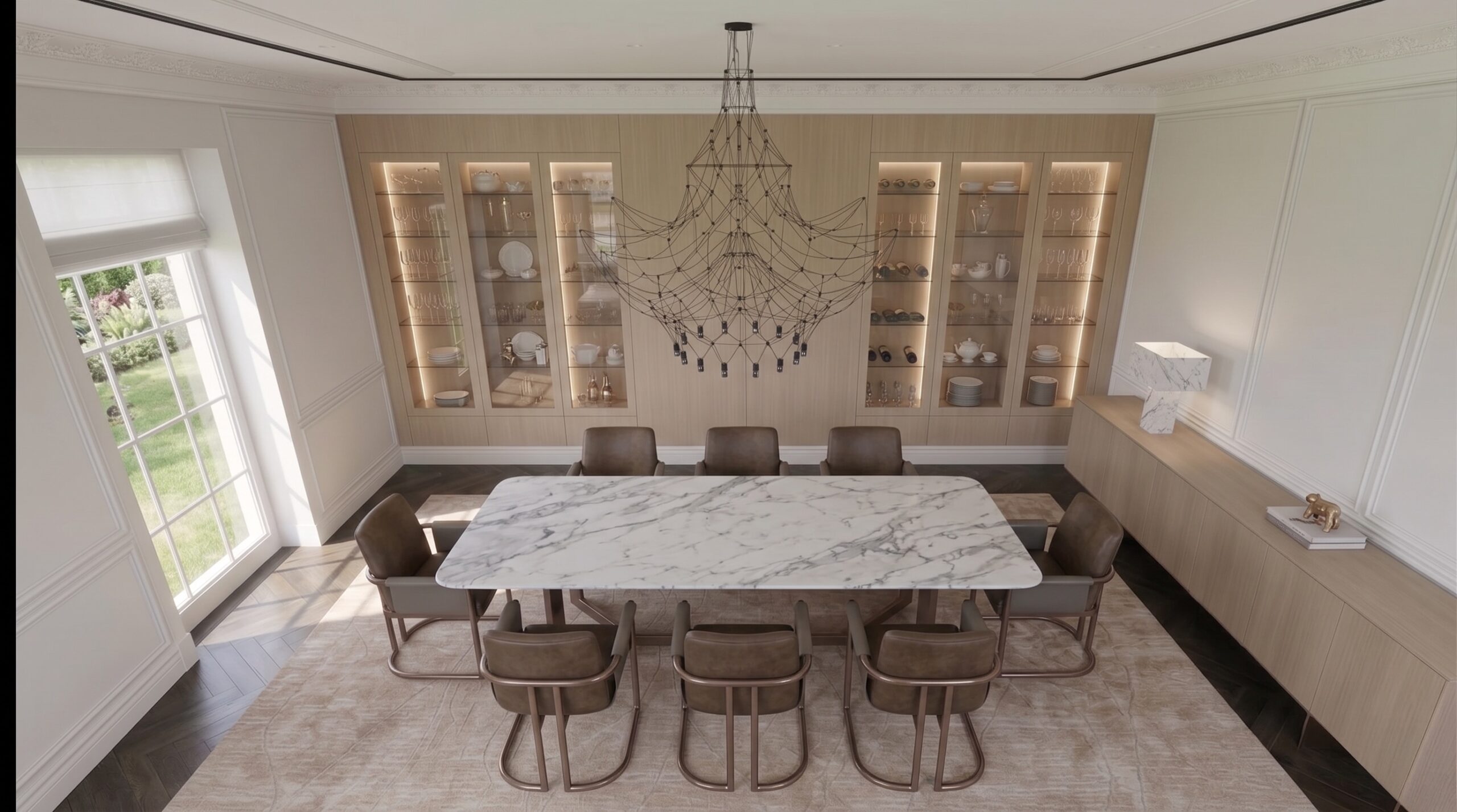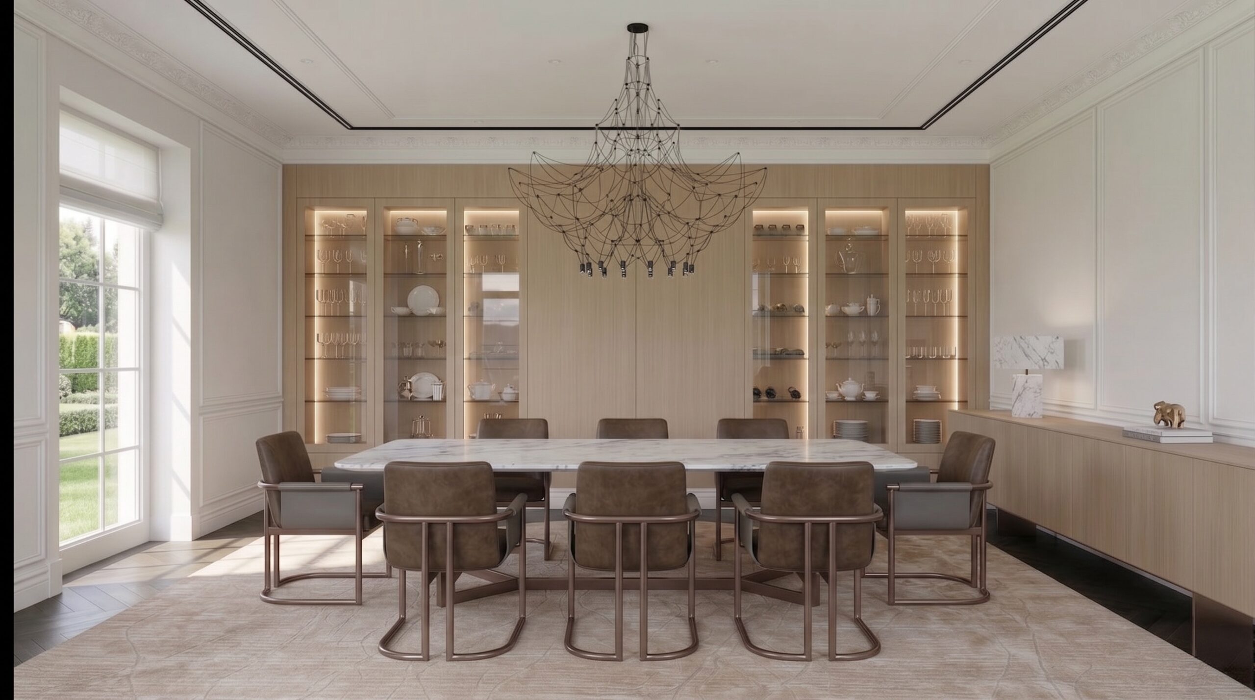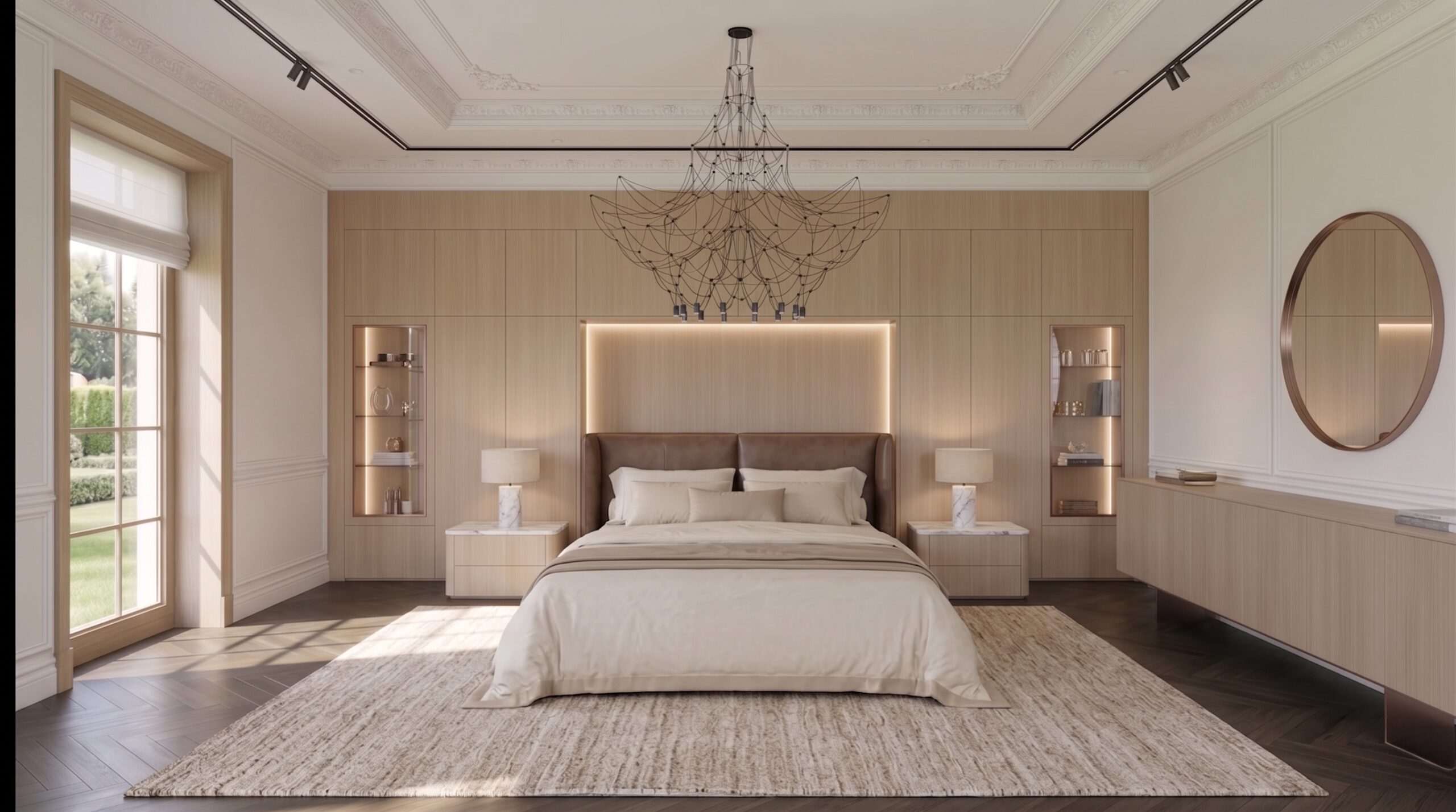 Minimal klasik yaklaşım ile doğal malzeme ve özel üretim mobilya tasarımlarının birleşimi, mekânı yalın, dengeli ve yüksek konforlu bir yaşam alanına dönüştürür.