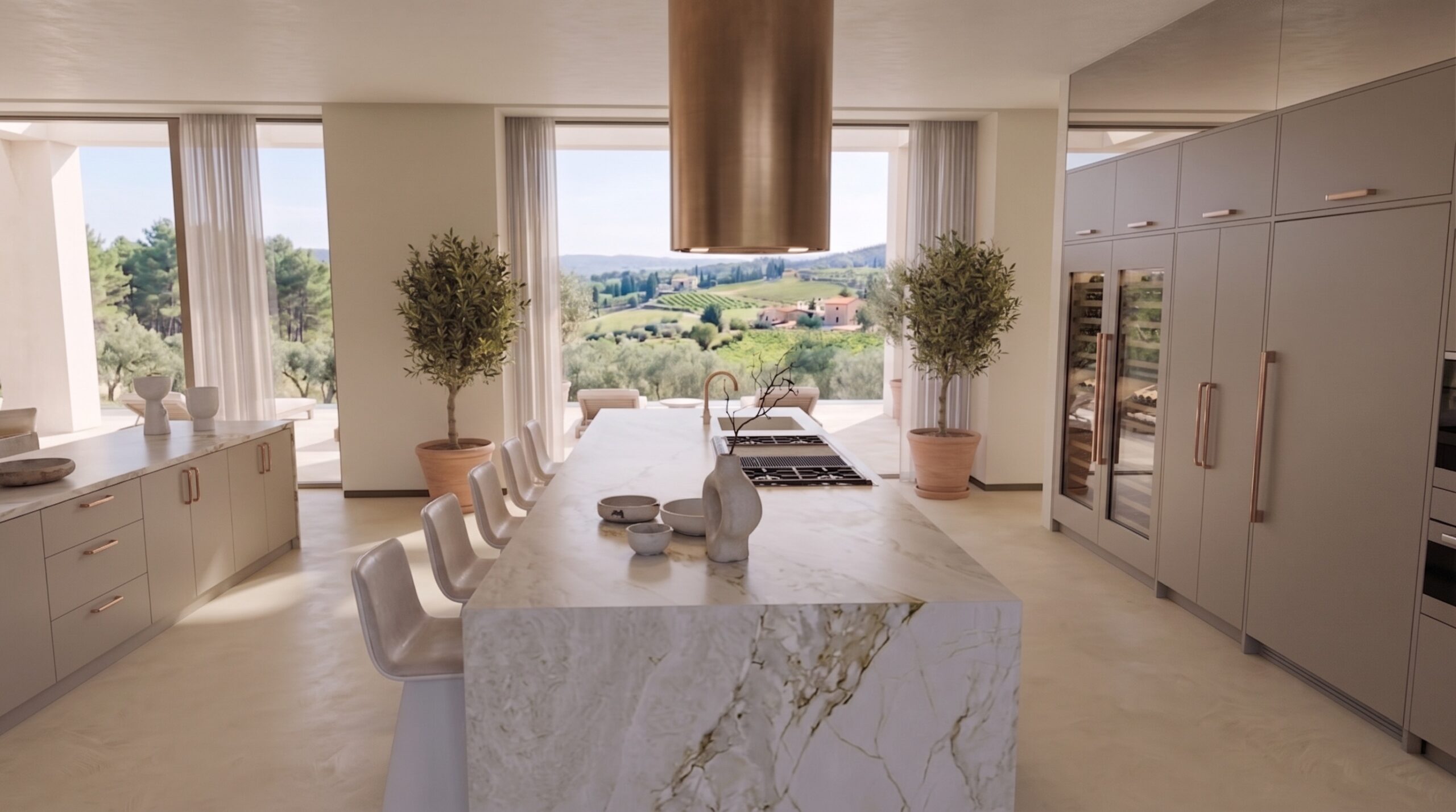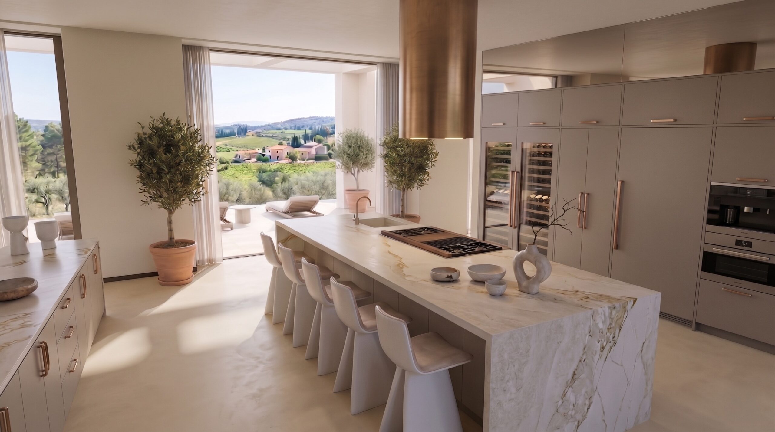 Doğal manzara ile bütünleşen bu konut, malzeme uyumu ve ışık dengesi üzerinden şekillenen rafine ve çağdaş bir yaşam atmosferi sunar.