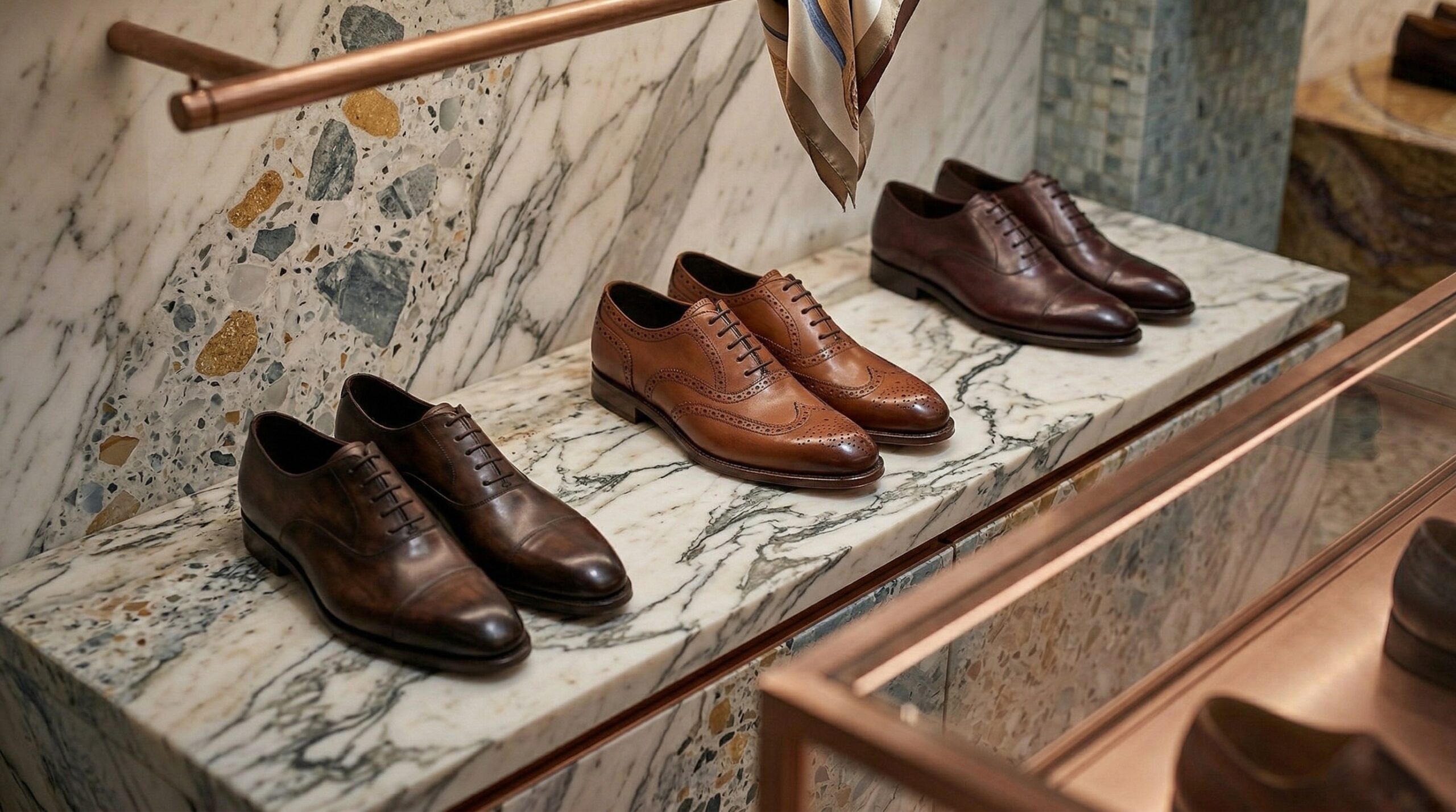 Sıcak ahşap sergileme elemanları ve cam vitrinler, klasik yüzeylerle kontrast oluşturarak mekâna dengeli bir çağdaşlık katar. Tasarım dili, geçmişin estetik mirasını modern lüks perakende deneyimi ile bütünleştirir.