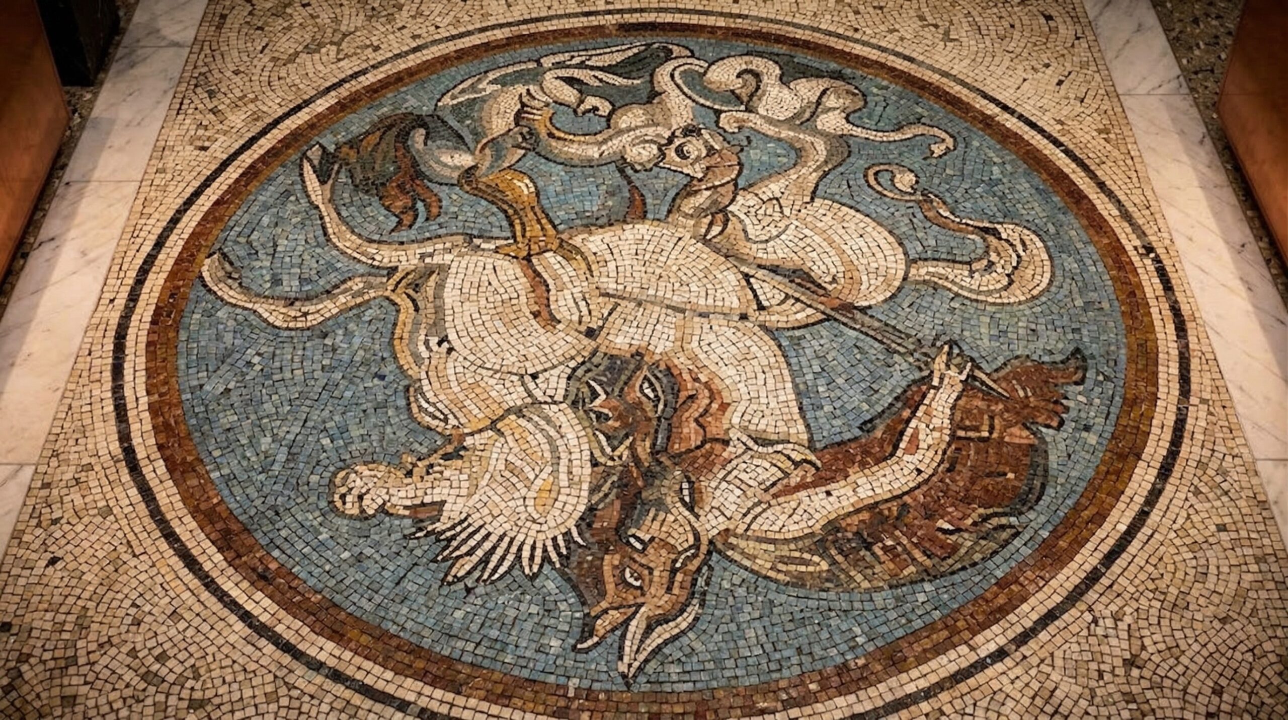 Duvarlarda yer alan figüratif mozaikler ve heykelsi objeler, mekâna müze benzeri bir karakter kazandırır. Simetrik plan kurgusu ve merkezi aks, kullanıcıyı girişten ana sergileme alanına doğru yönlendirirken; vitrinler ve platformlar ürünleri katmanlı bir şekilde sunar.